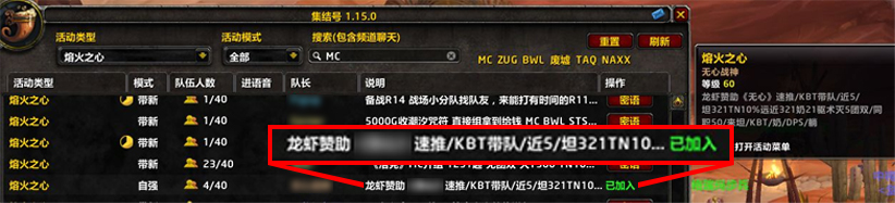 第一步 需要在集合石挂上“【龙虾赞助】为开头标语”需从开始挂到进本开团,截图留存